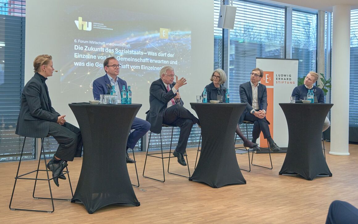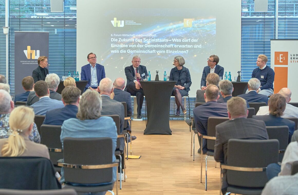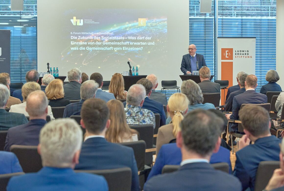 Das VhU-Forum Wirtschaft und Gesellschaft mit dem Titel „Die Zukunft des Sozialstaats – Was darf der Einzelne von der Gemeinschaft erwarten und was die Gemeinschaft vom Einzelnen?“ fand am 24. Februar im Haus der Wirtschaft Hessen statt und wurde gemeinsam von der Ludwig-Erhard-Stiftung und der VhU organisiert.